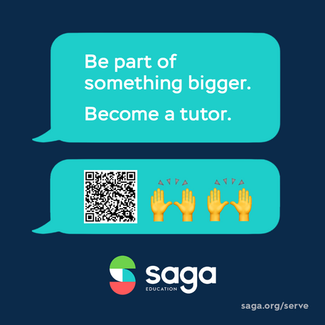 Saga Education’s mission is to transform public education and improve outcomes for underserved students. They strive to help accelerate educational equity so every student can imagine and achieve their potential. Saga’s visual style includes several bright colors and a variety of mosaic shapes.